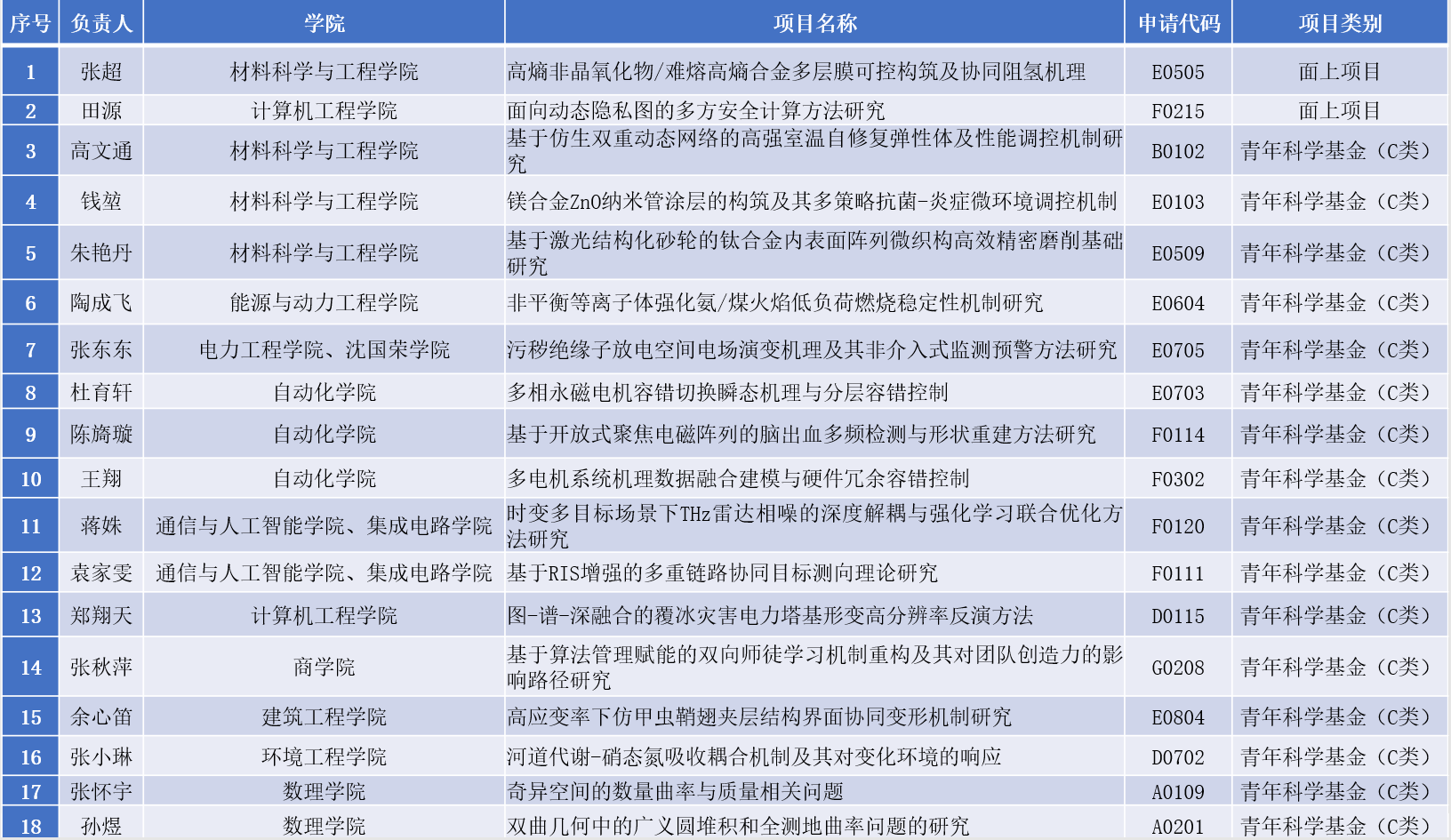 我校获批18项国家自然科学基金项目