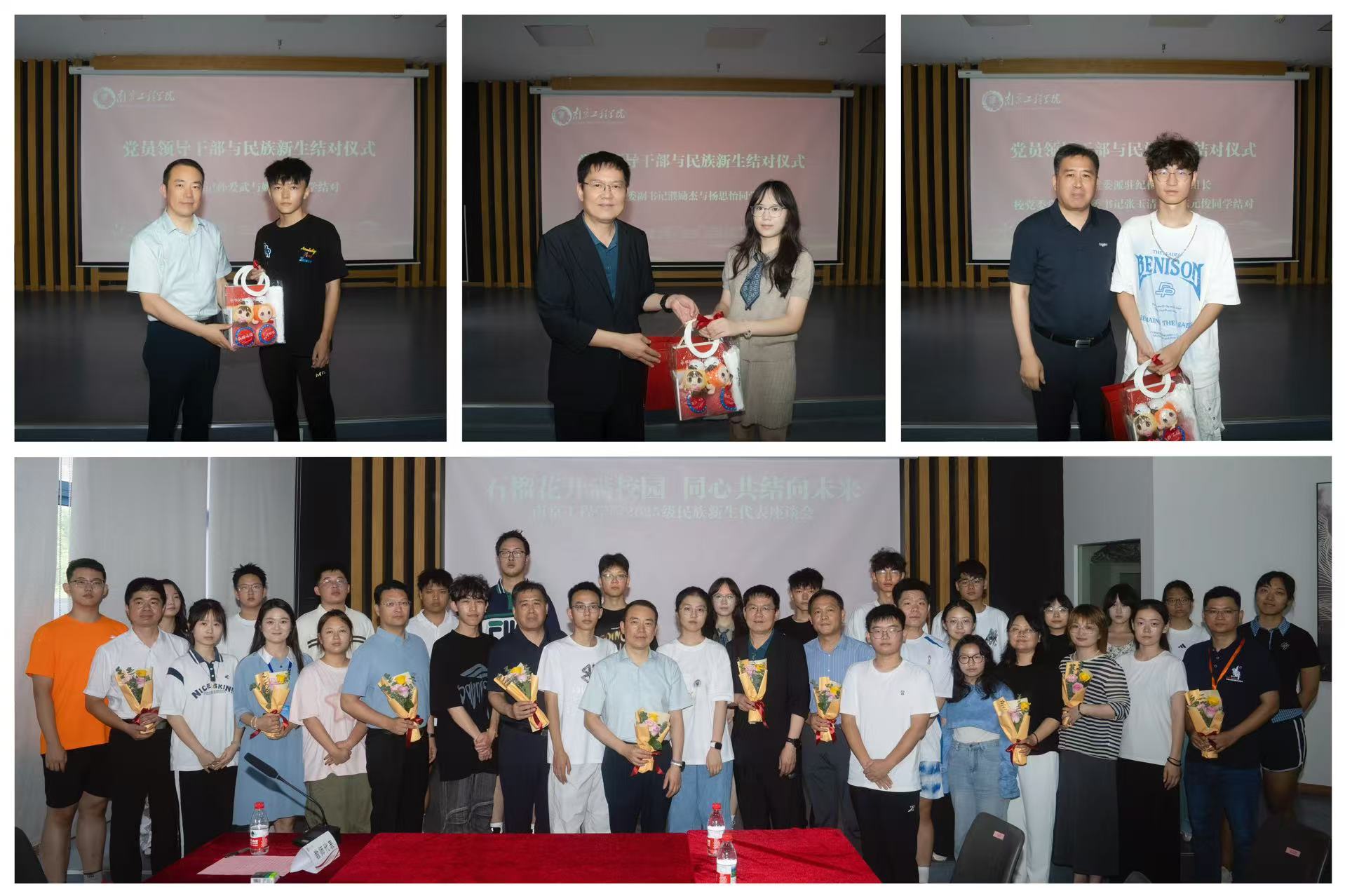 会上,孙爱武、濮励杰和张玉清分别与姚祖军、杨思怡、毛陈元俊三位同学结对共建。与会领导向少数民族新生代表赠书寄语,学生代表向老师们献上鲜花。