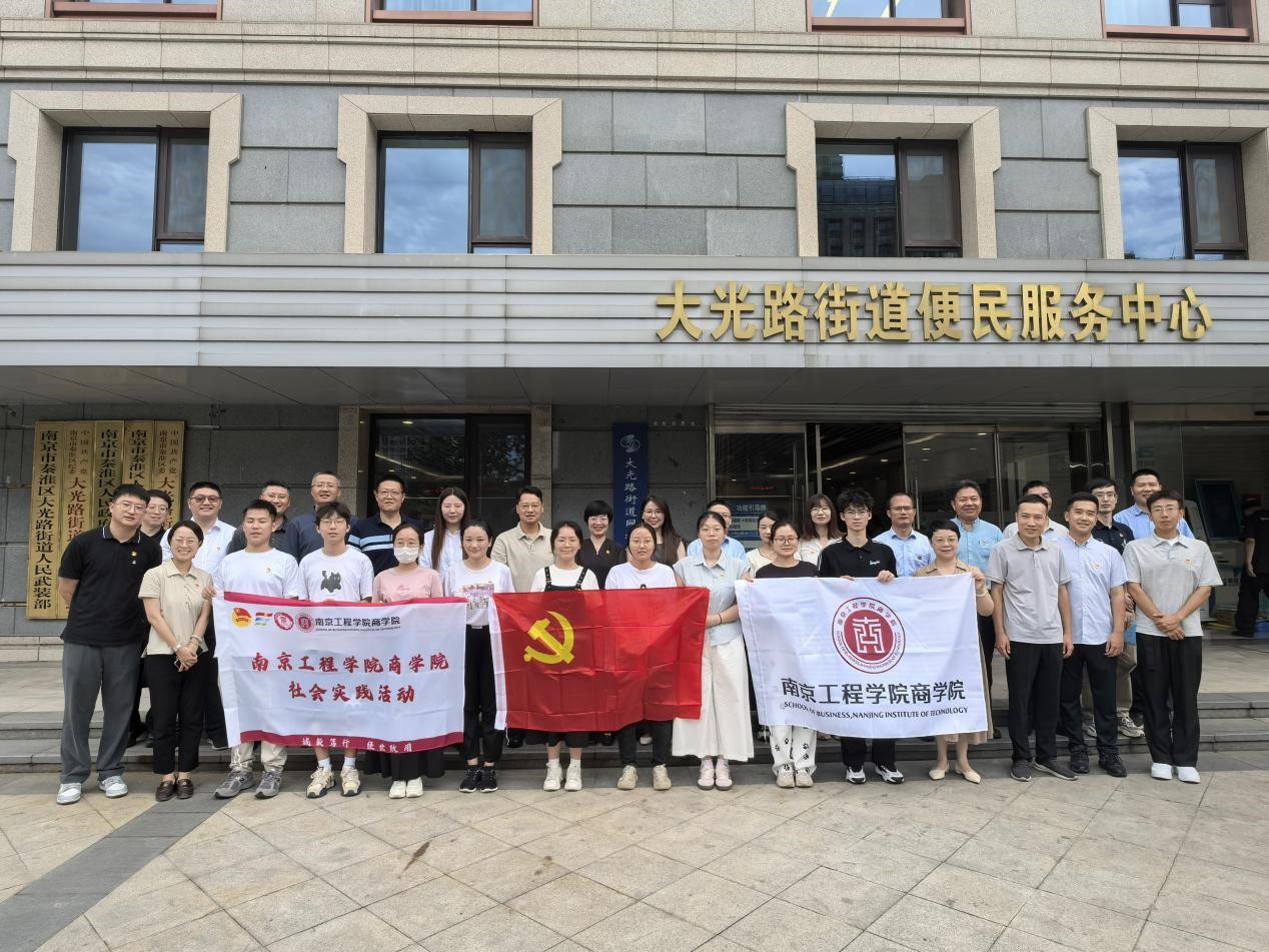 为推动高校智力资源与地方发展需求深度对接,6月30日下午,商学院与秦淮区大光路街道联合举办校地企党建共建活动。商学院党委书记张文莉带领师生代表,携手秦淮区区委组织部、区人社局等部门负责人,街道党工委班子成员、社区书记及企业代表共40余人,共同探索“产学共赢、人才共育、文明共治”的校地协同发展新路径。